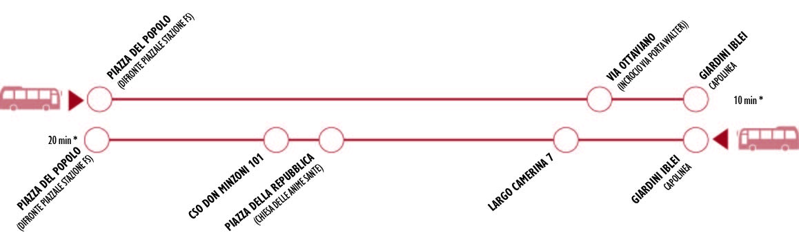 La Linea Rossa (già Hybus Rossa) è una linea circolare che parte dalla fermata Piazza del popolo di fronte al piazzale della stazione FS e fa capolinea ai Giardini Iblei per ritornare al capolinea di partenza.